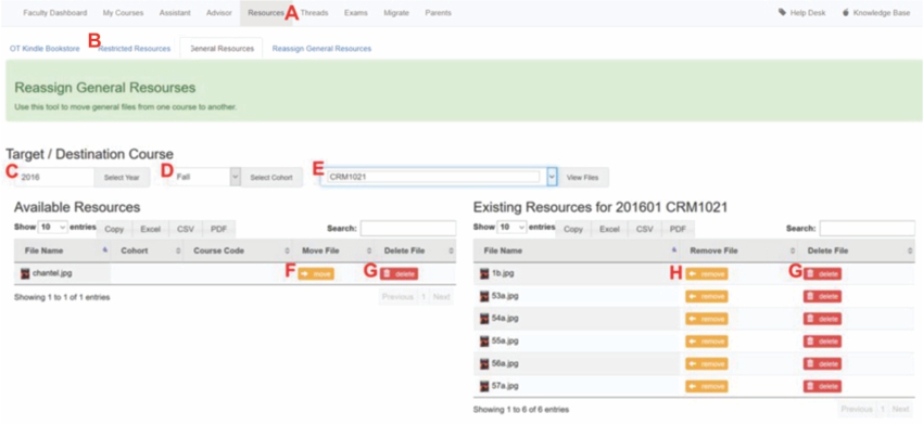 F: Click the YELLOW "Move" button to move the available resource into your selected cohort / course